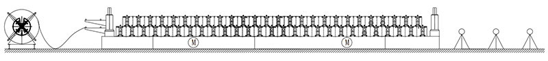 5T Hydraulic Decoiler→Manual Pre-Cutter Device→Feeding Guide Device→Roll Forming System→Hydraulic Post Cutter Device→AUTO Exit Rack