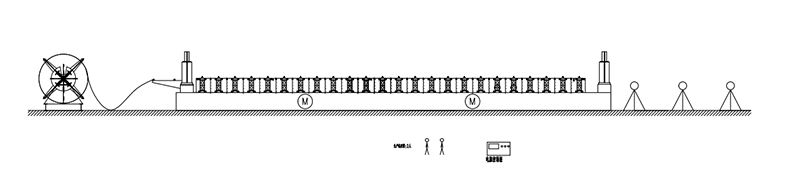 5T Hydraulic Decoiler→Hydraulic Pre-Cutter Device→Feeding Guide Device→Roll Forming System→Hydraulic Post Cutter Device→Exit Rack